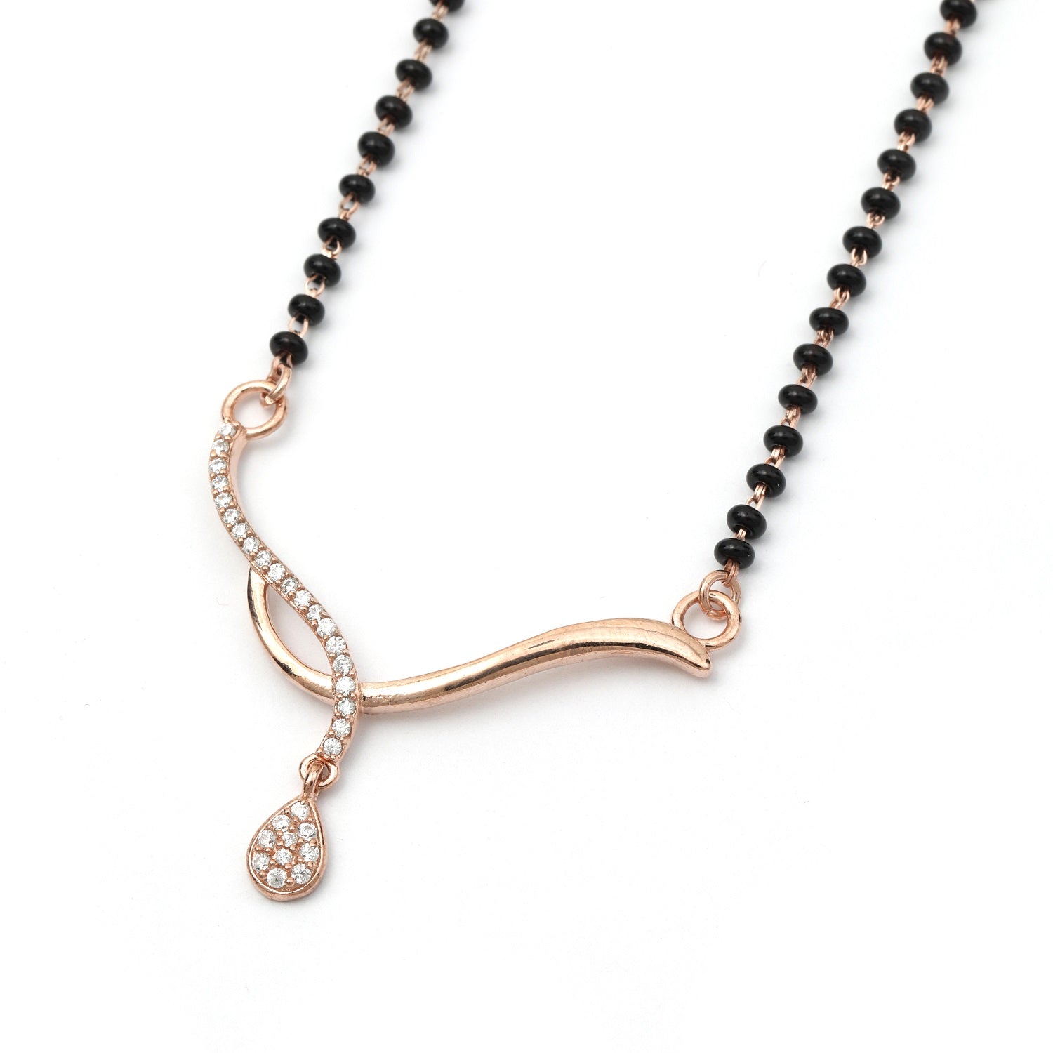 MAIRA 925 Sterling Silver Officewear RoseGold Plated Black Mani Mangalsutra Gift For Wife/ Women