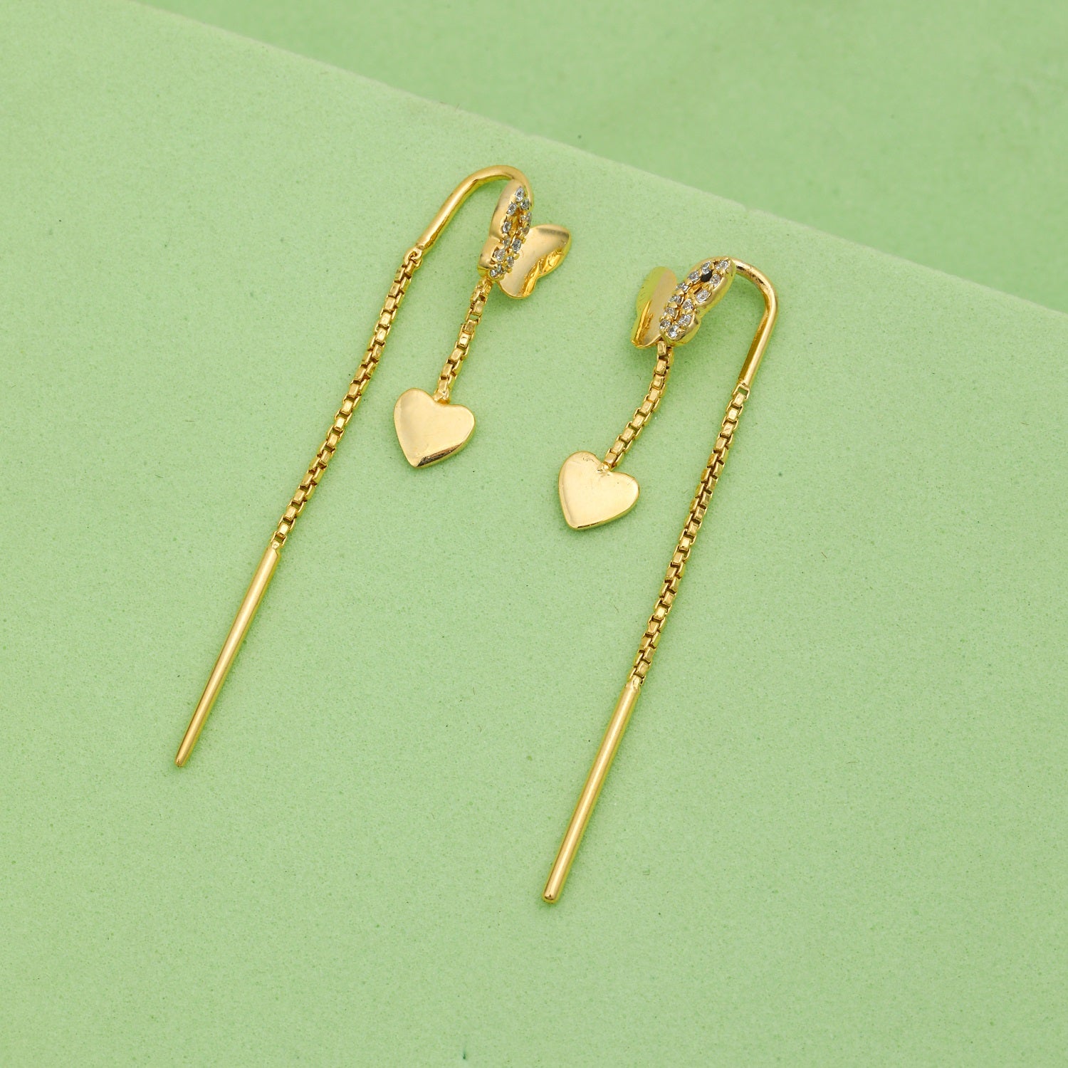 MAIRA 18 k Gold Plated Butterfly with Heart Drop & Long Chain 925 Sterling Silver Dangle Earrings for Women / Valentine Gifts