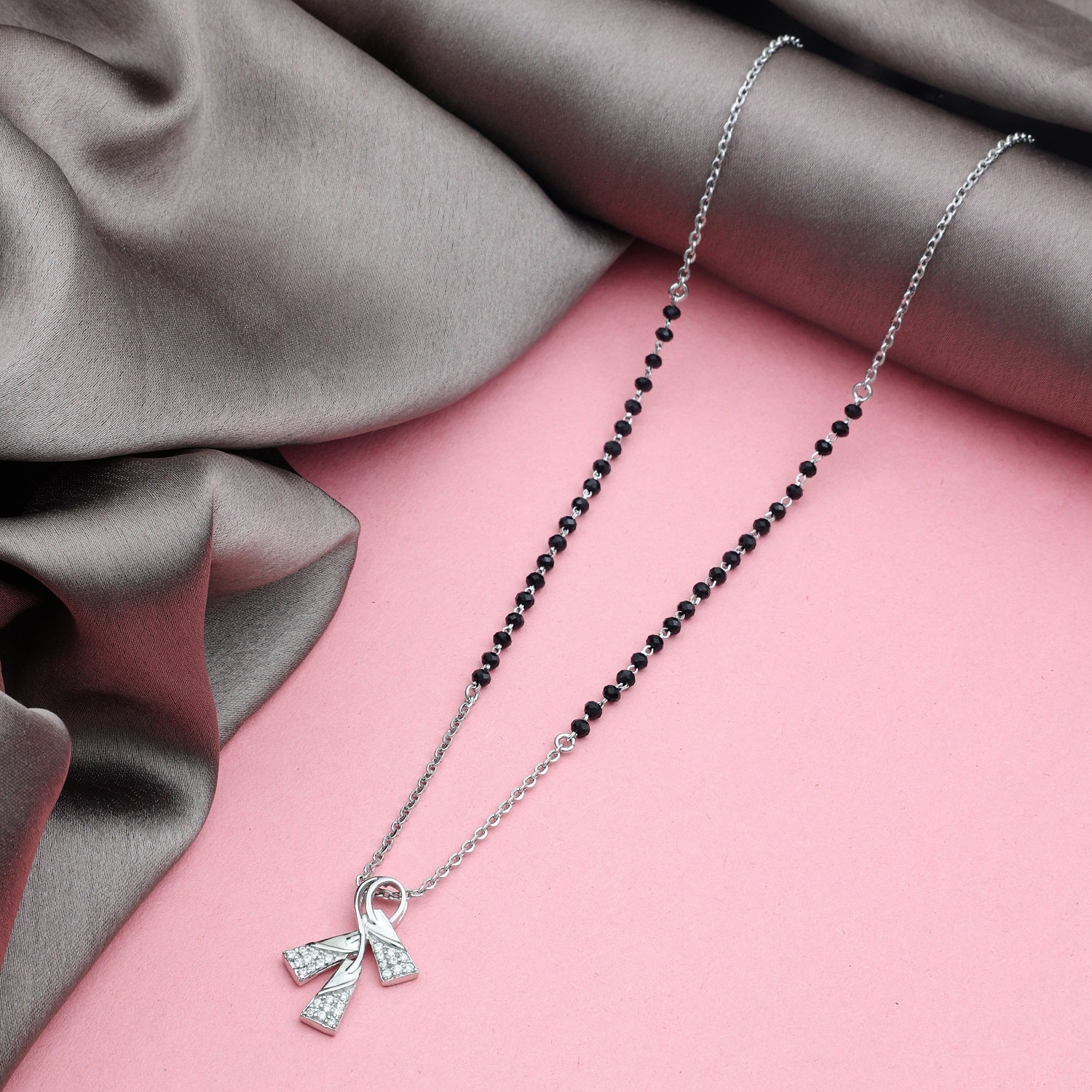MAIRA Stylish Black Mani 925 Sterling Silver Enamel Pendant 18 inch Mangalsutra Jewellery / Gift for Women