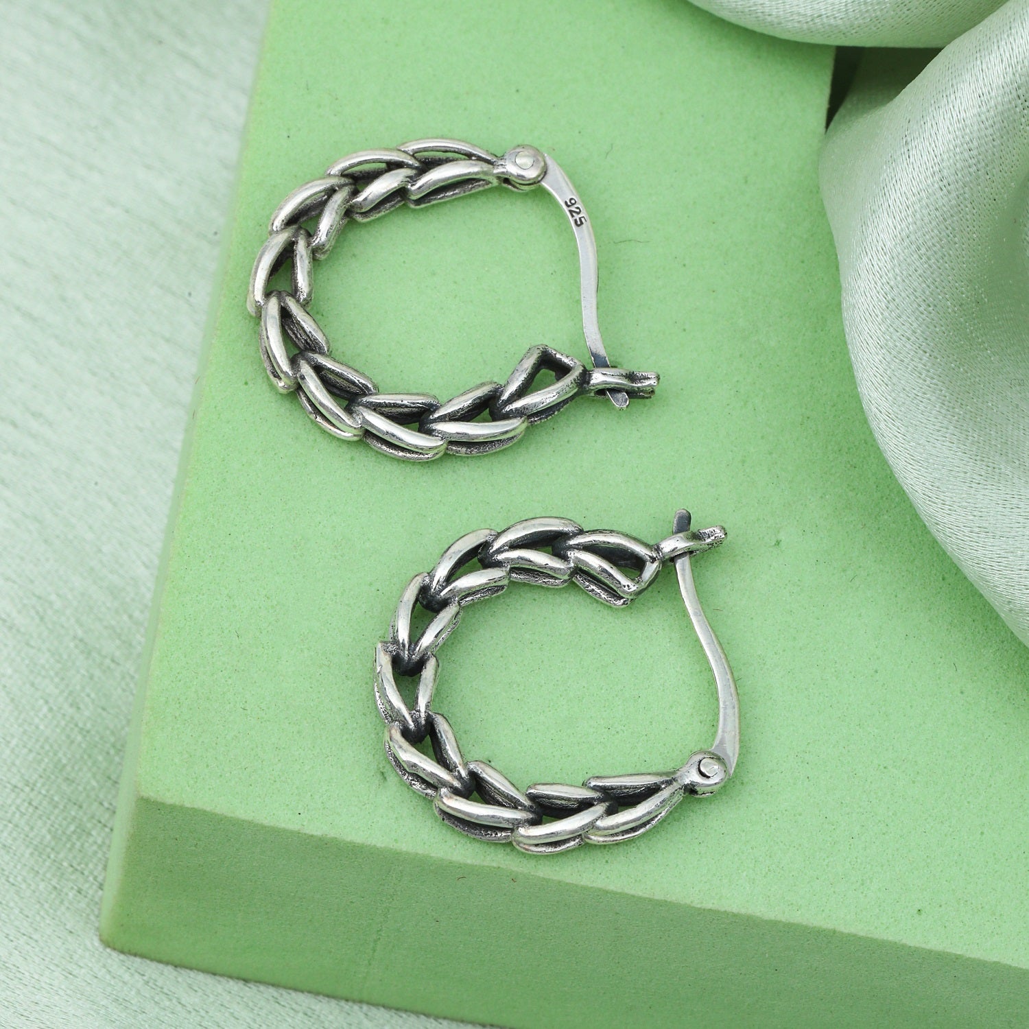 MAIRA Antique Hoop Earrings with Leaf design Drop 925 Sterling Silver Earrings Gift for Women / Girls
