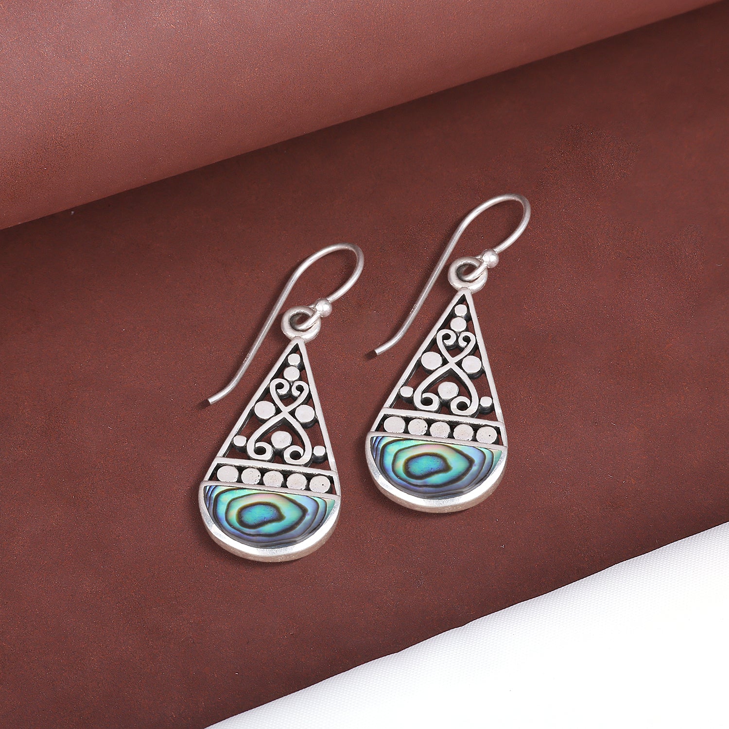 MAIRA 92.5 Sterling Silver Light Weight Stylish Tear Drop MOP Design Earrings Jewellery for Women / Gifts for Girls