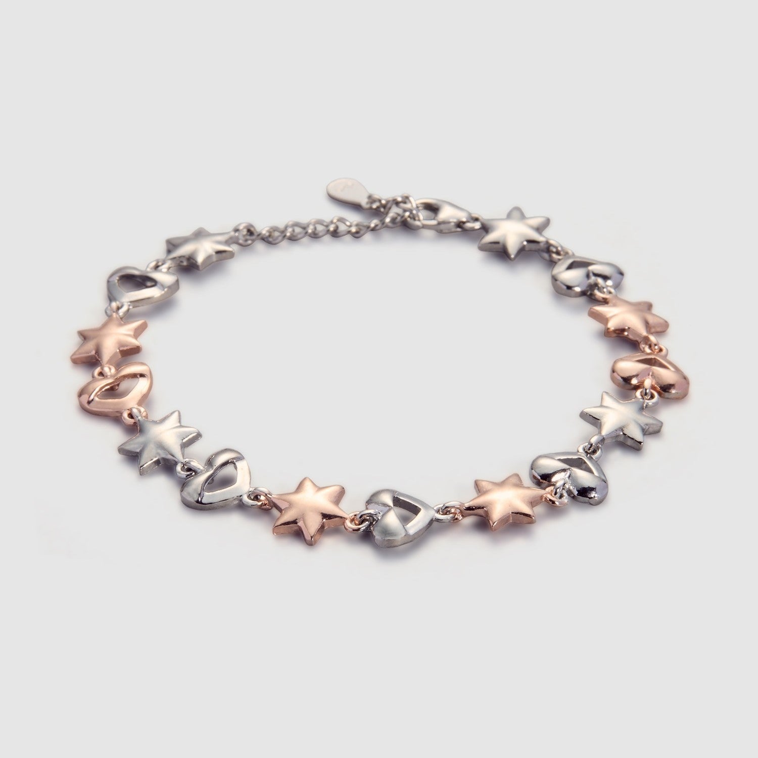 MAIRA 925 Sterling Silver 2 Tone RoseGold Star & Valentine Heart Bracelet Jewellery / Gift for Women