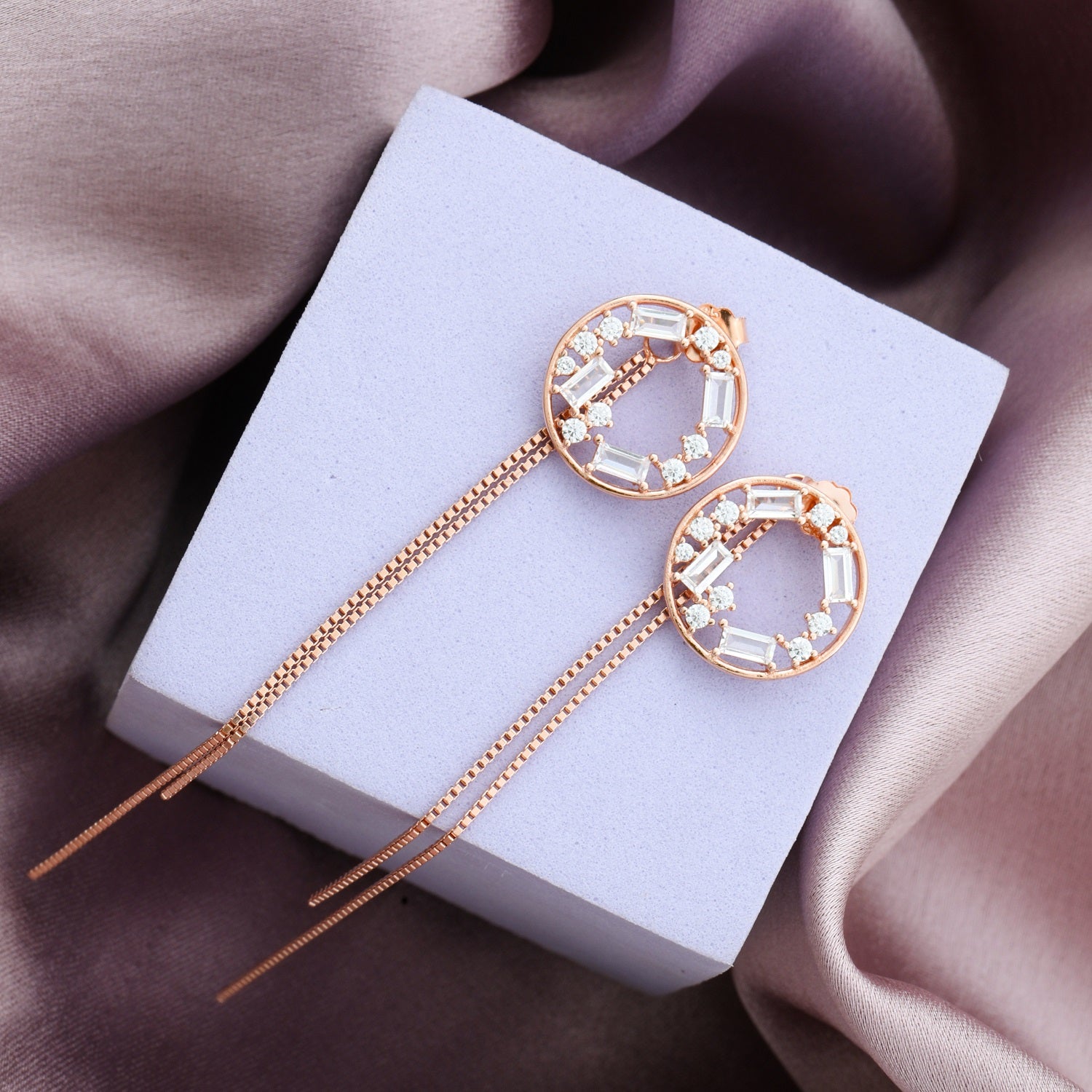 MAIRA Stunning Rose Gold Plated 925 Sterling Silver Dangling Shoulder Duster Earrings for Women / Valentine Gift for Girls