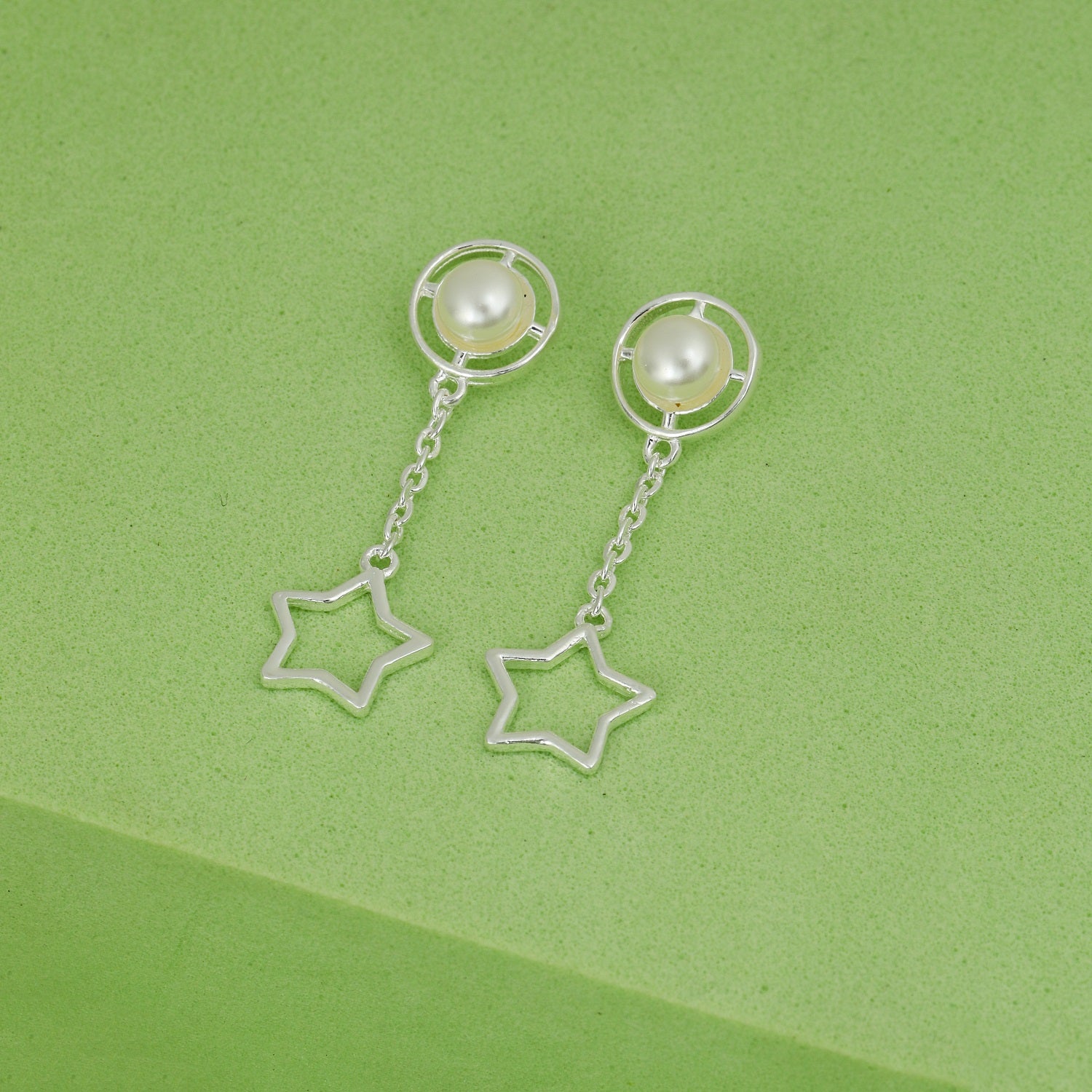 MAIRA 925 Sterling Silver Floral Pearl Drop Earrings For Women/ Girls