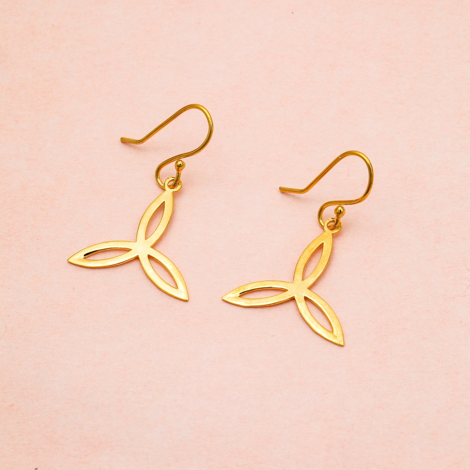 MAIRA 3 petal Floral 925 Sterling Silver 18 K Gold Plated Hoop Earrings for Women