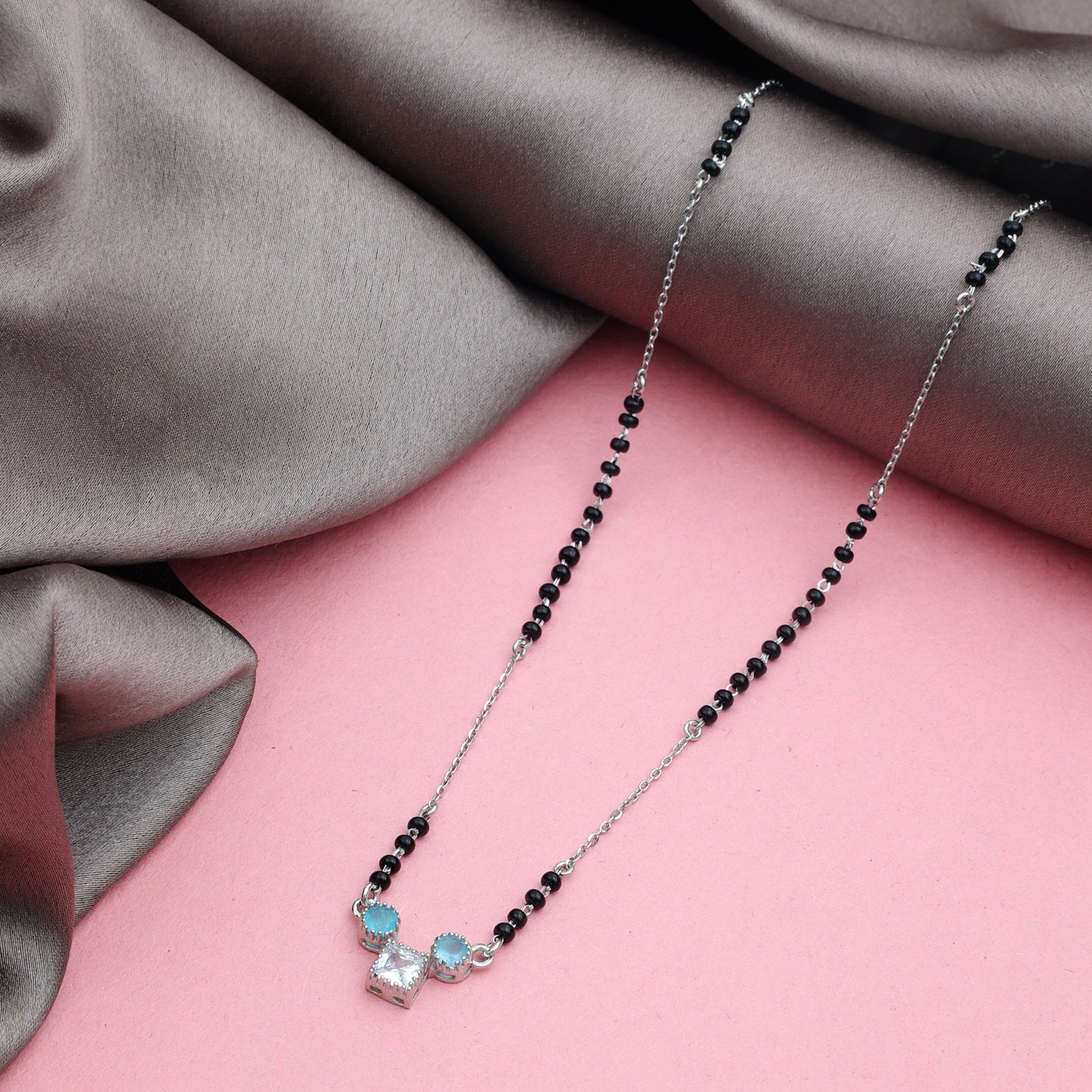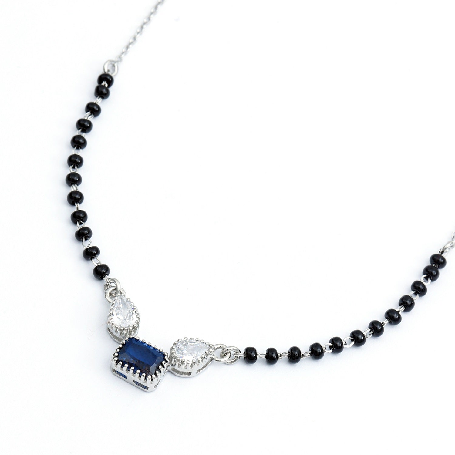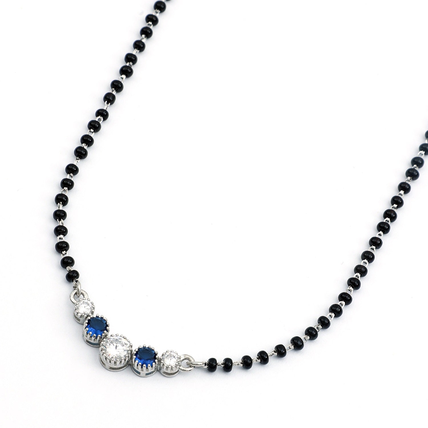 MAIRA Sterling Silver Swiss Zirconia Black Beads Stylish 18 Inch Working Women Mangalsutra Jewellery