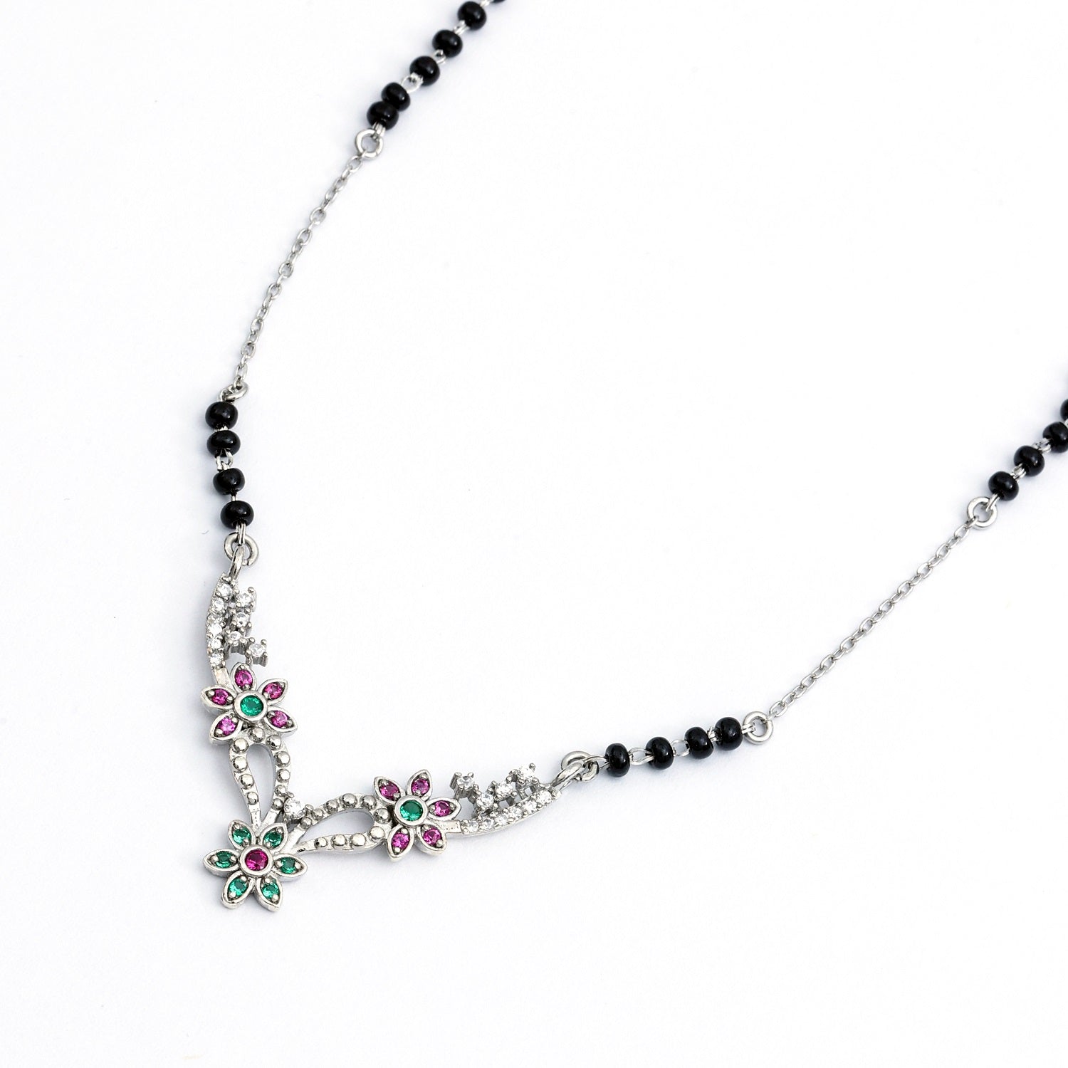 MAIRA Ruby Green Floral Pendant 925 Sterling Silver 18 Inch Latest Mangalsutra Jewellery / Gift for Women