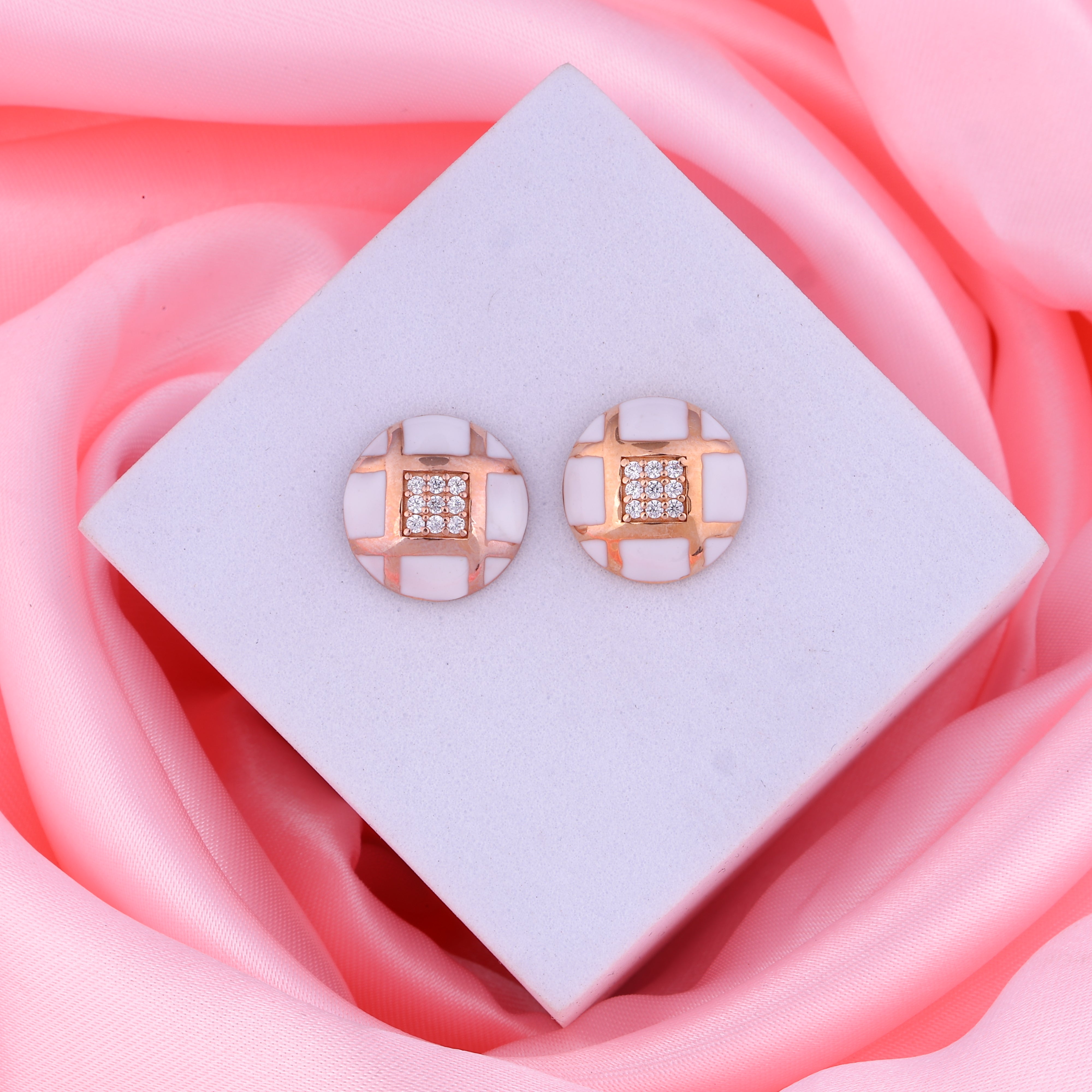 MAIRA Elegant made with 925 Sterling Silver with Rose Gold & CZ stones White Enamel Stud Earrings / Valentine gift for Women