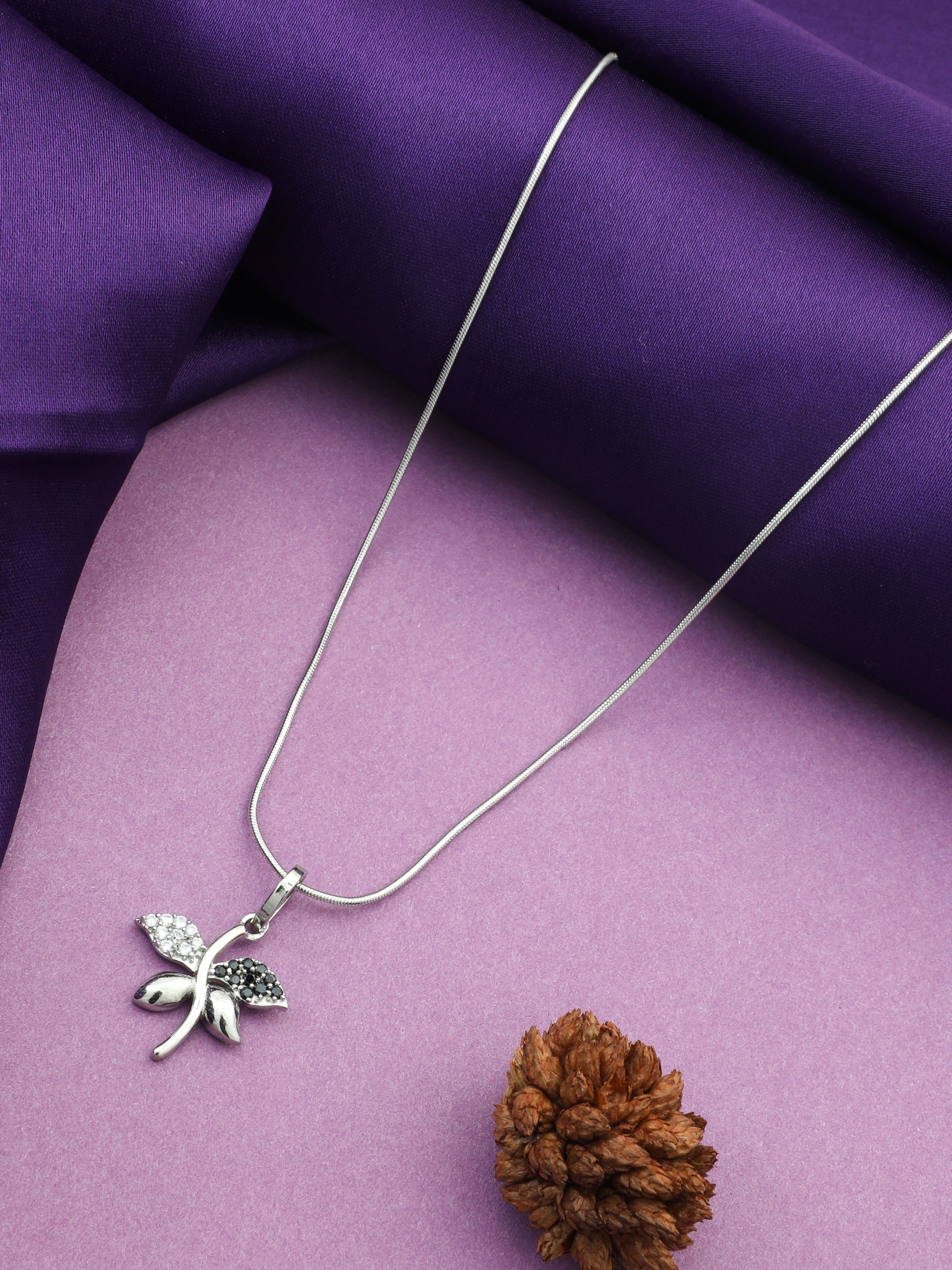 MAIRA Made with Swiss Zirconia 925 Sterling Silver Rodium Plated Petals Leaf Pendant Chain Necklace Jewellery / Gift for Women & Girls