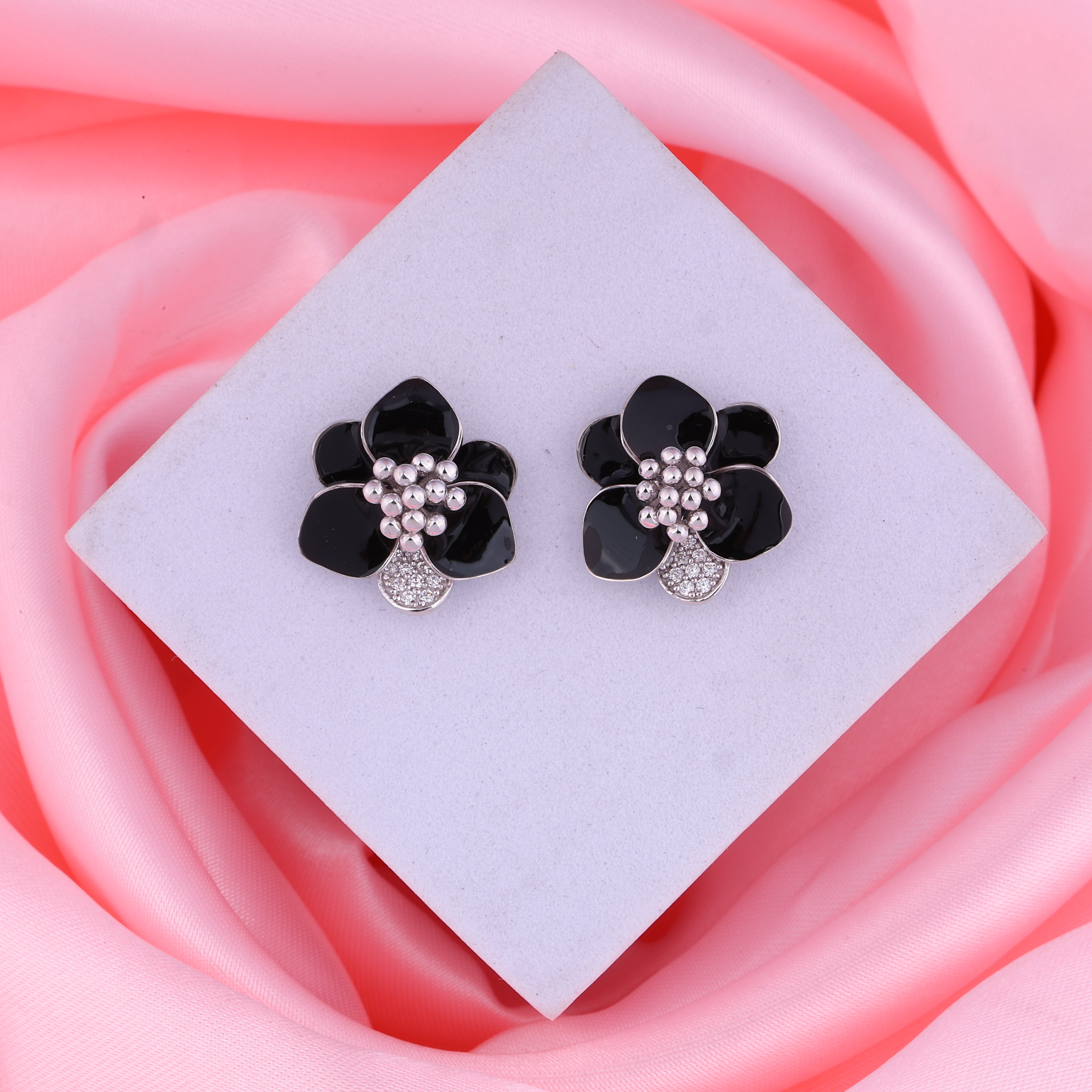 MAIRA Floral 925 Sterling Silver Earrings with Enamel & AAA grade stones for Girls / Women
