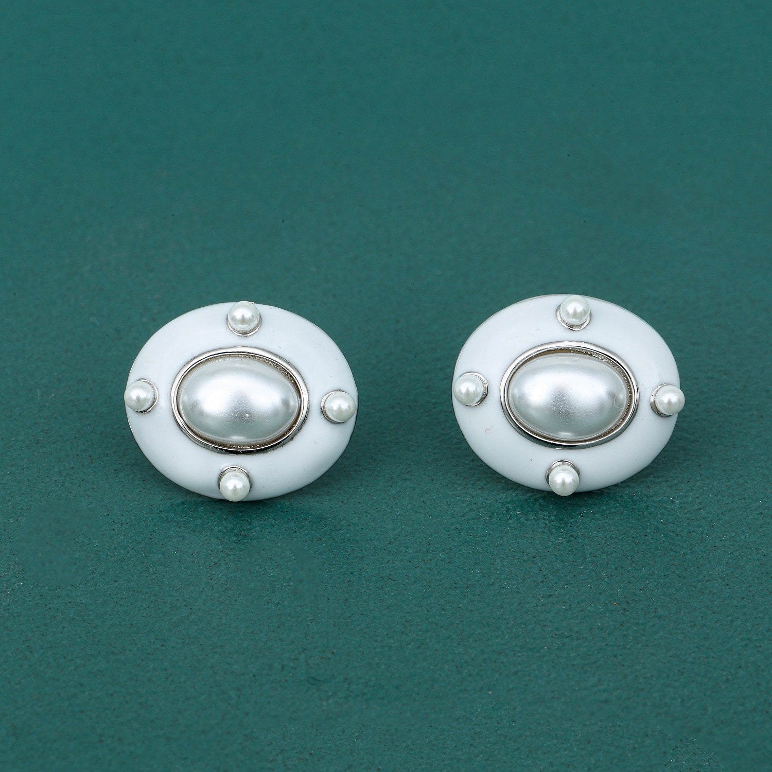 MAIRA Oval Pearl Enamel Sterling 925 Silver Premium Earrings