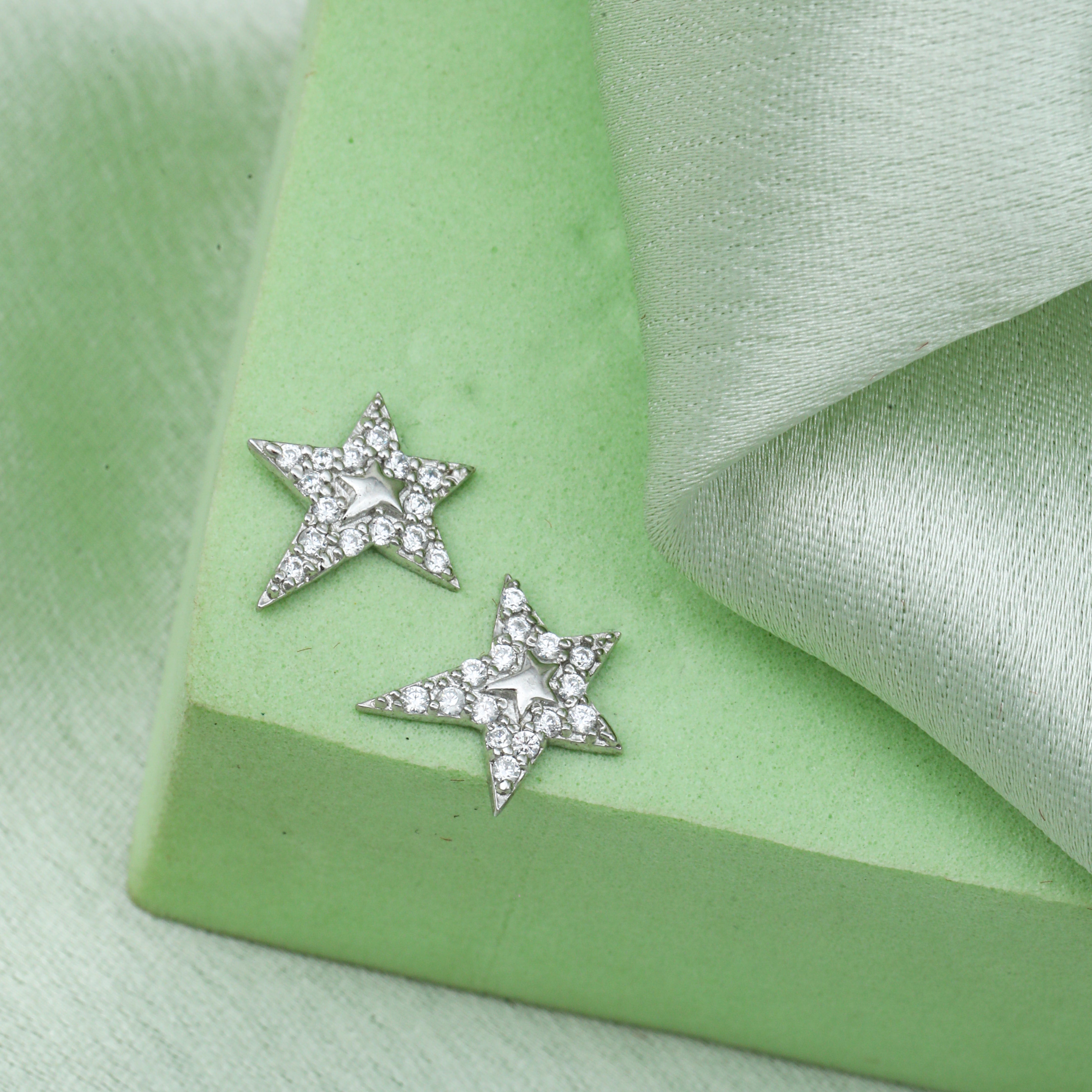 MAIRA 925 Sterling Silver STAR STUD Earrings for Girls / Women