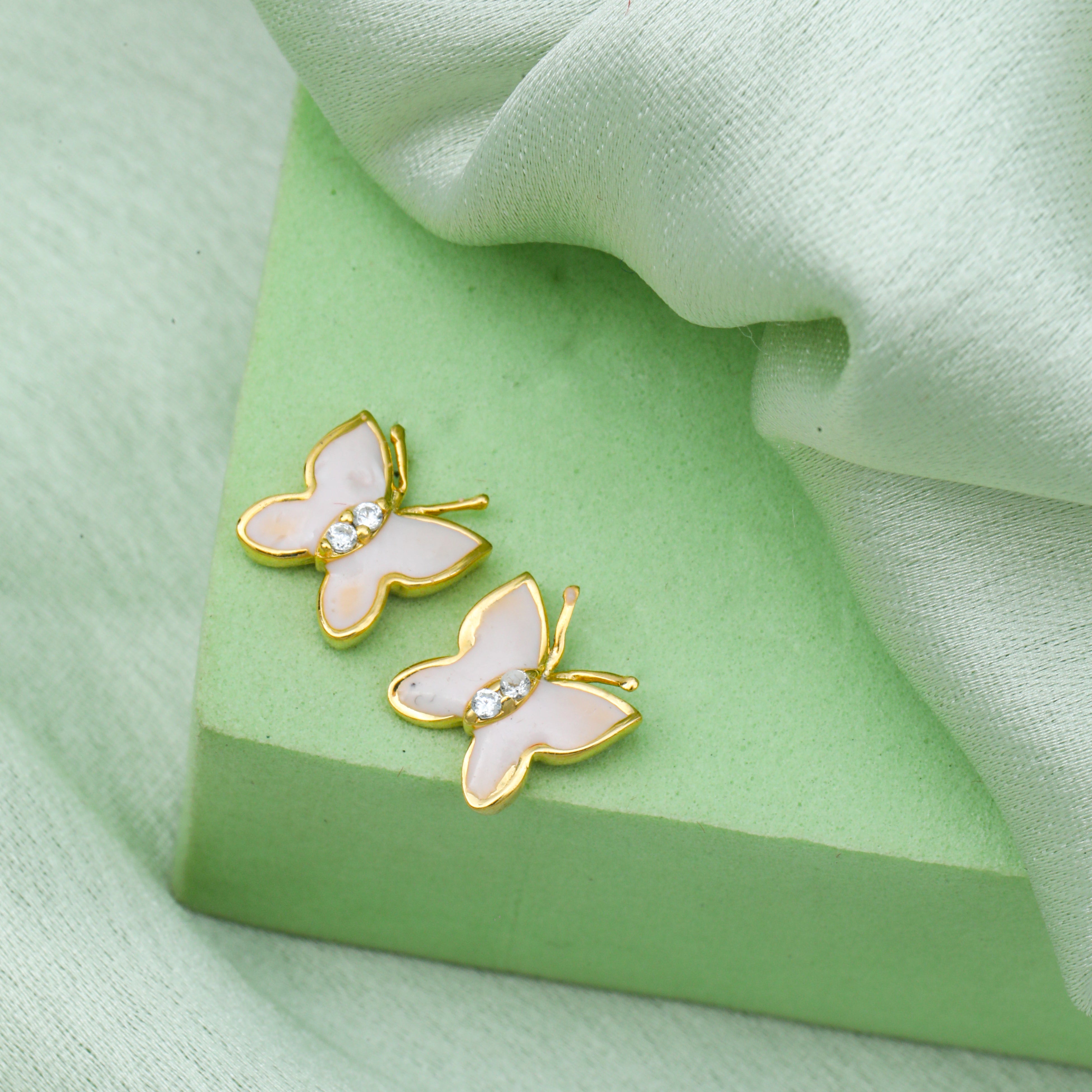 MAIRA 925 Sterling Silver 18K Gold Plated MOP Butterfy Studs Earrings for Women / Valentine Gift for Girls
