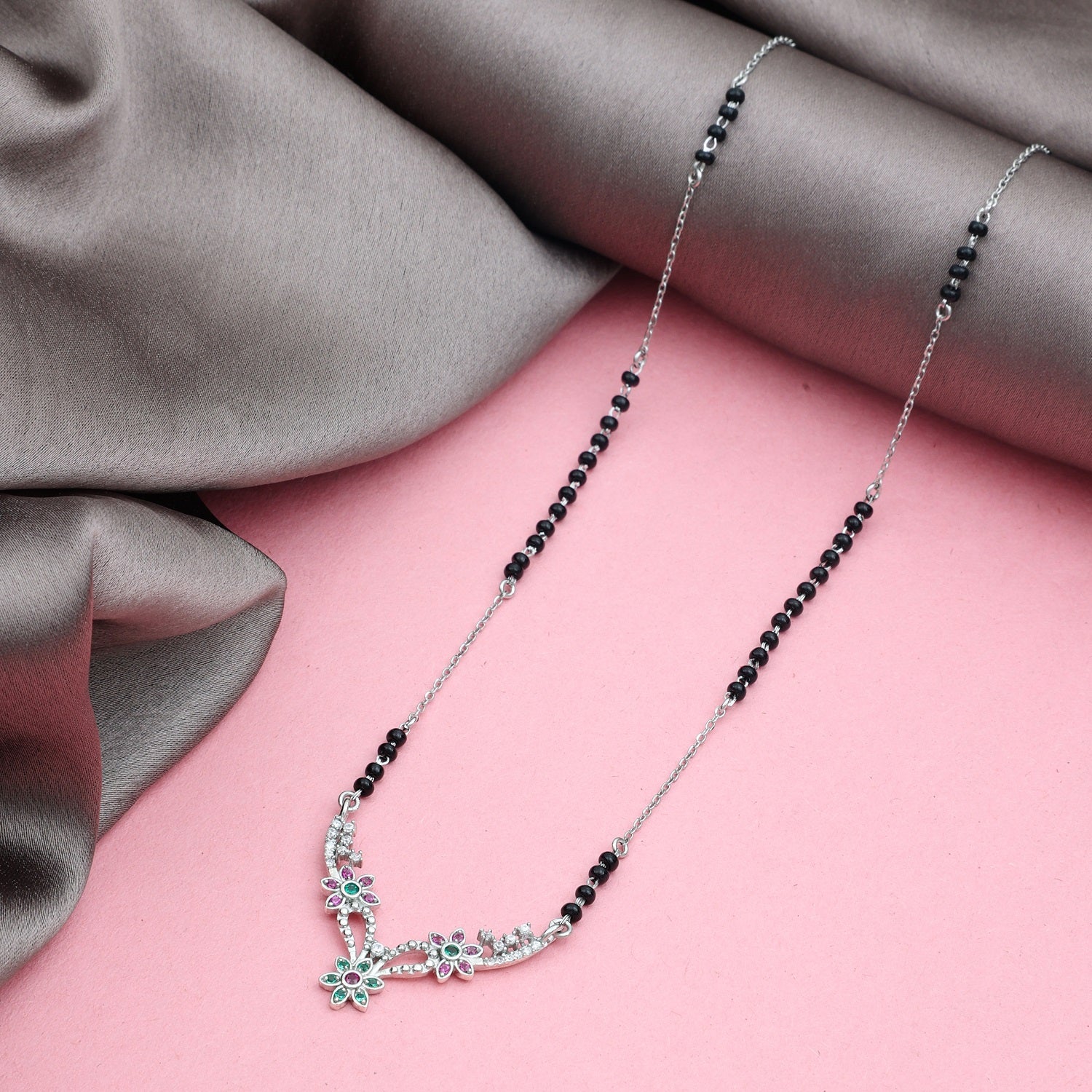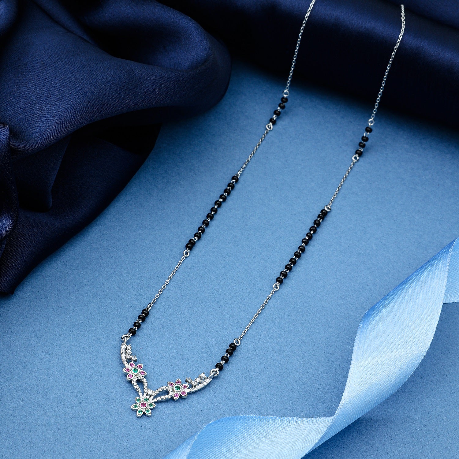 MAIRA Ruby Green Floral Pendant 925 Sterling Silver 18 Inch Latest Mangalsutra Jewellery / Gift for Women
